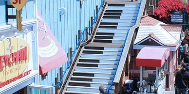 Make music on PIER 39's Musical Stairs ® , the interactive art exhibit presented by Artist Remo Saraceni, creator of the musical stairs in the movie Big.