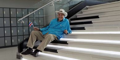 Remo on the fully interactive and lighted steps in the Beautiful and Groundbreaking Oxigeno Mall "el primer Human Playground de Latinoamérica " in the San Jose Capital Reigon
