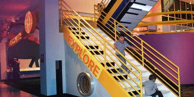 The main staircase at the museum transformed into an interactive musical instrument playing a variety of notes and melodies as one goes up and down the stairs.